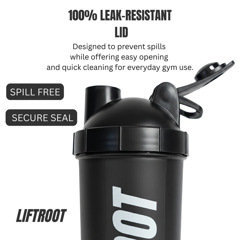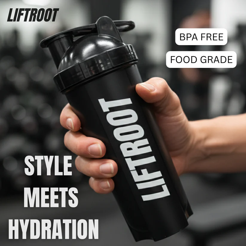 Built for durability and everyday performance, the LIFTROOT shaker features a minimal black finish with bold branding, making it suitable for both men and women. Whether you’re lifting weights, doing cardio, or heading out for the day, this shaker is a dependable fitness essential.